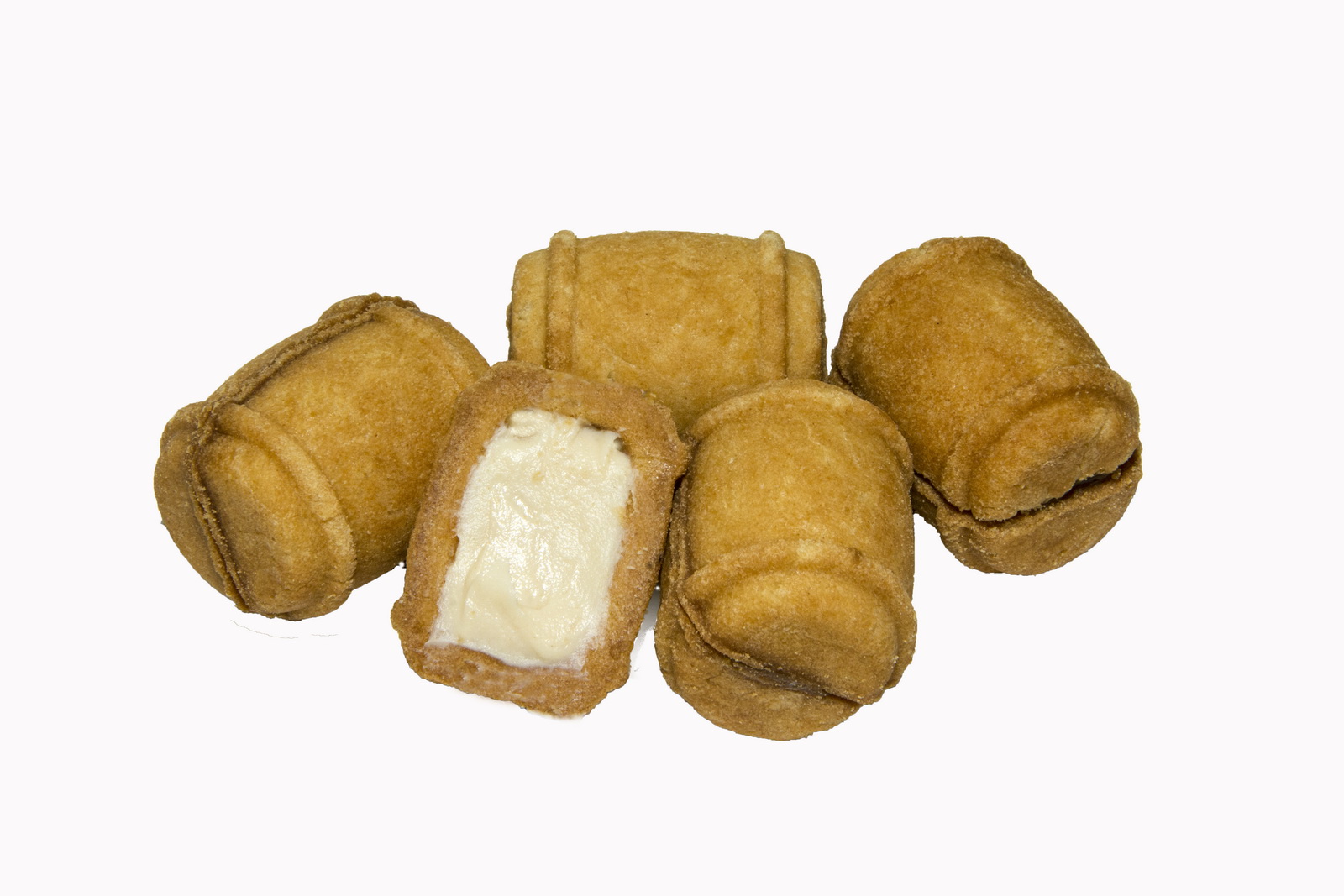Сдобное бисквитное печенье в виде бочонка с начинкой сгущенное молоко